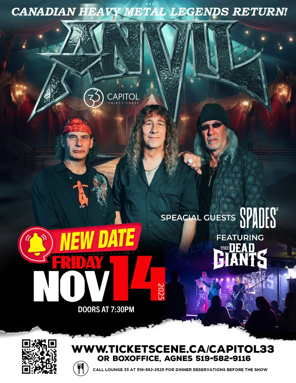 Anvil is a Canadian heavy metal band formed in Toronto in 1978. The band currently consists of founding members guitarist/vocalist Steve “Lips” Kudlow and drummer Robb Reiner, along with bassist Chris Robertson who joined in 2014. As of 2024, the band has released twenty studio albums; they have been cited as having influenced many notable heavy metal groups including Megadeth, Slayer, Anthrax, and Metallica.