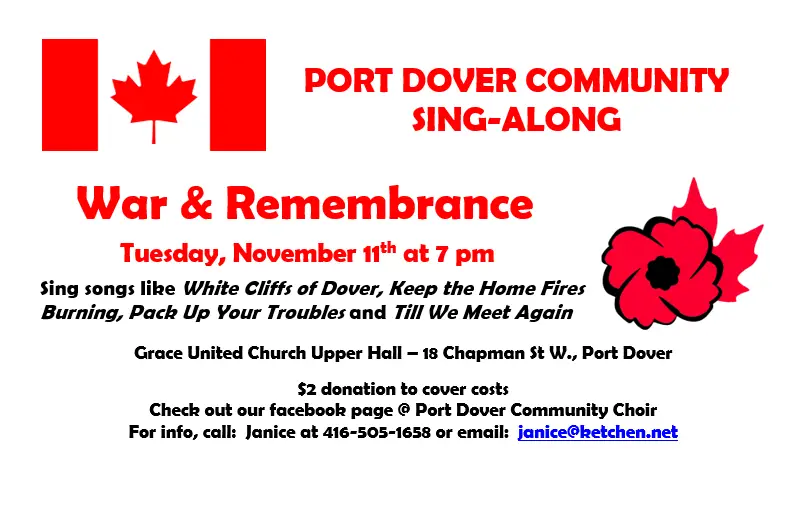 Join in singing popular wartime songs like White Cliffs of Dover, We’ll Meet Again, As Time Goes By, It’s a Long Way to Tipperary and many more.