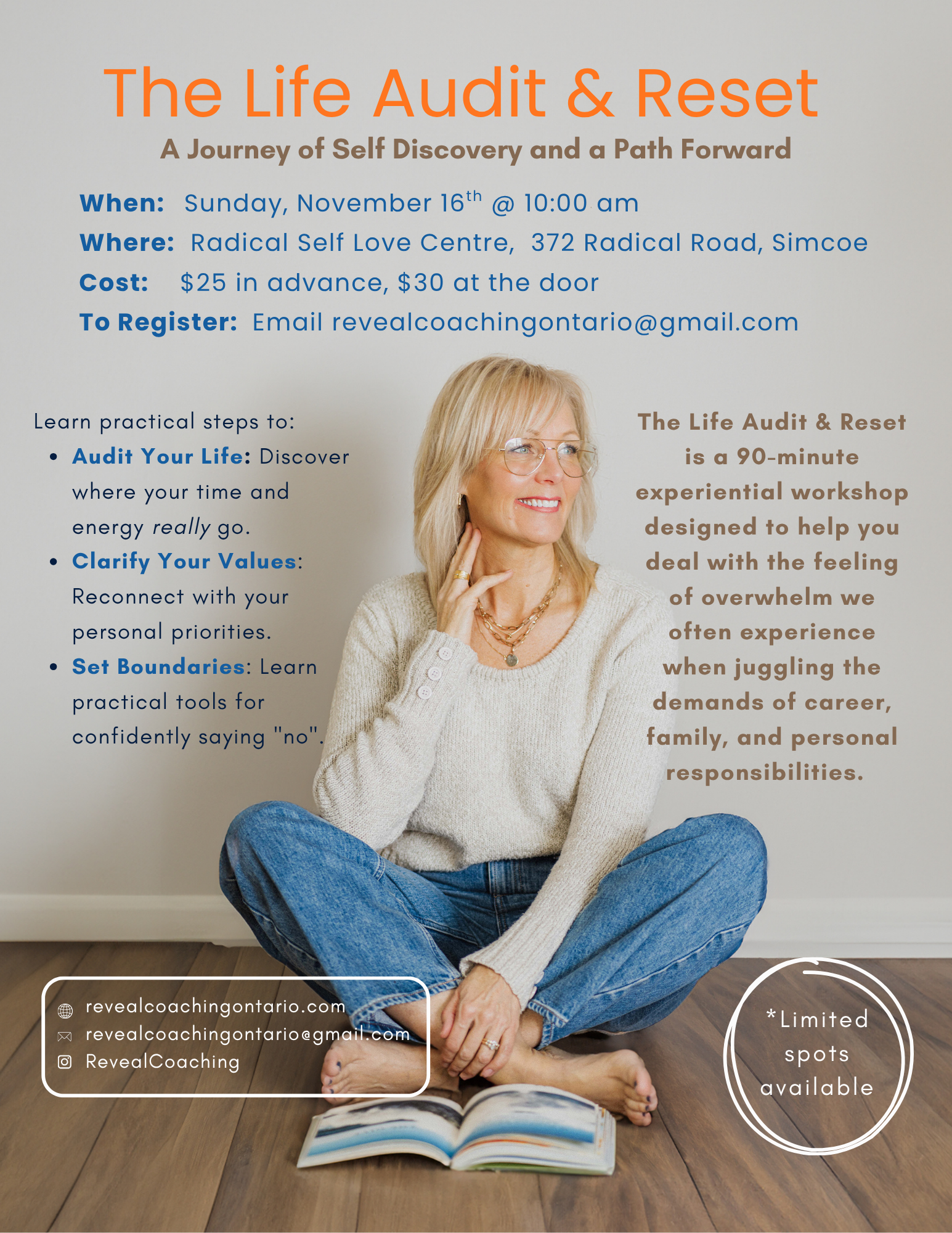 This interactive workshop is designed to provide participants with a structured framework for evaluating their current life situation, identifying areas of misalignment, and creating a clear, actionable plan for intentional change.